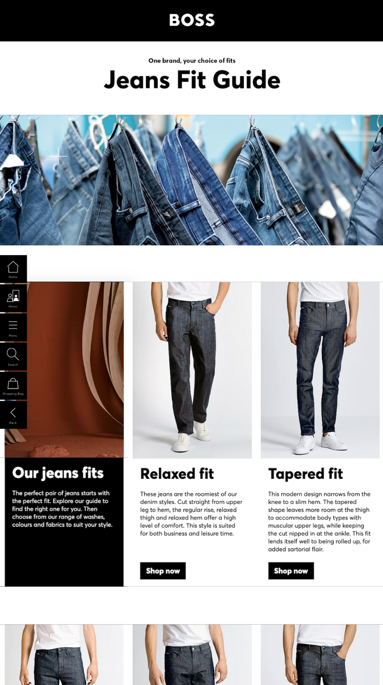 The team at HUGO BOSS were keen to provide information that would help customers on their buying journeys. The Fit Guides were built to help the customers identify which items of apparel would most likely provide the best fit based on the product sizing attributes.