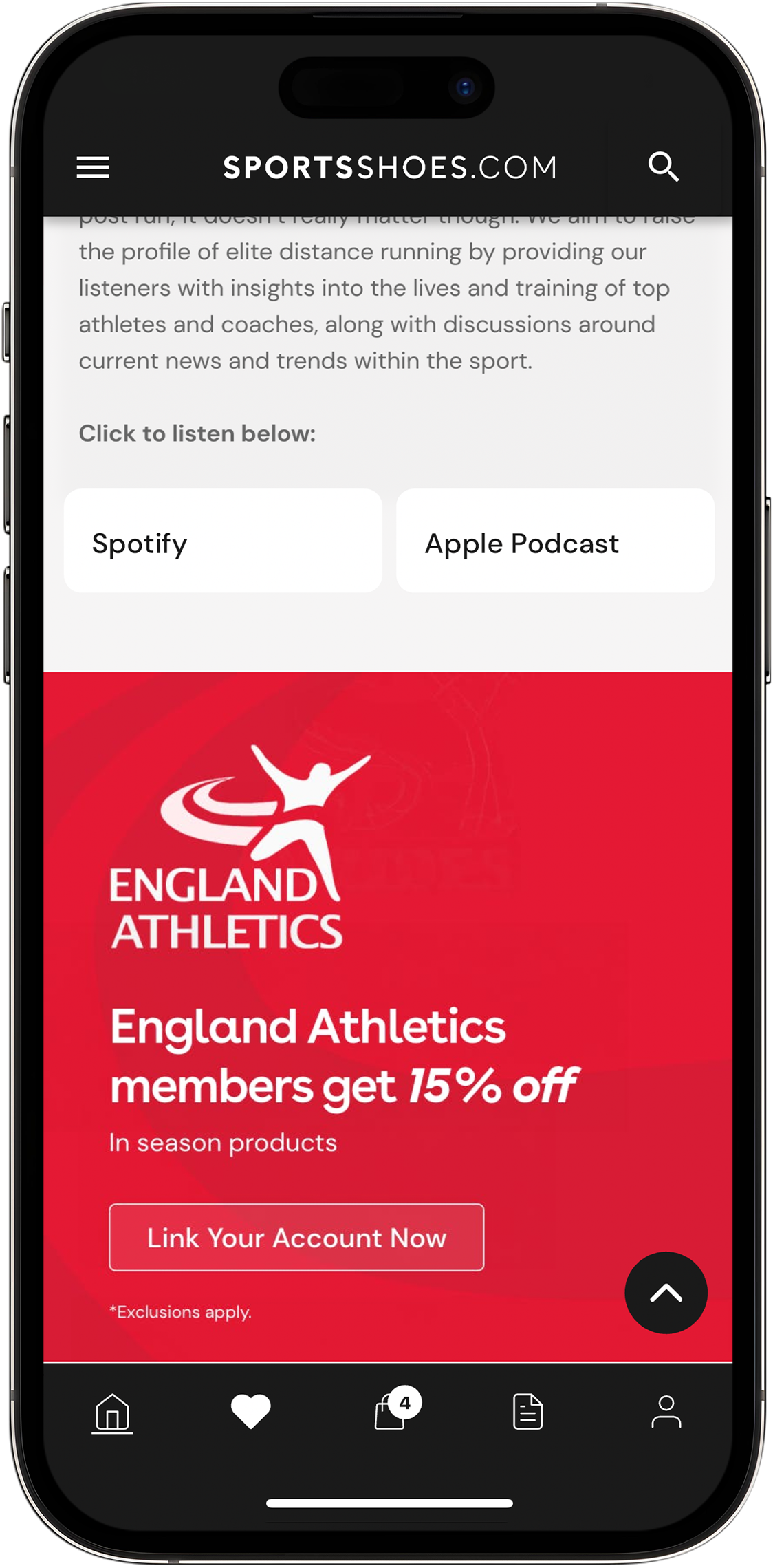 As well as being a member of the Sportsshoes community some customers are also members of other running focused organisations such as England Athletics. The Sportsshoes mobile app allows members of both programmes to link their accounts and for members of England Athletics to receive specific member discounts. This co-collaboration of value helps both organisations to strengthen the bond between customer and brand.