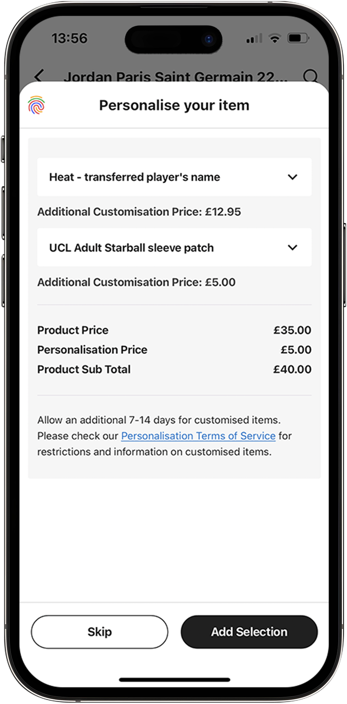 People today want to express themselves and their personalities in everything they own and  brands are very aware that personalisation creates value for their customers. A study by Deliotte discovered that personalised products can command a premium price of up to 20% more than non-personalised products,  a great opportunity for retailers to increase revenues. ProDirect have introduced this feature into their consumer mobile app, allowing customers to personalise shirts and boots to help strengthen the bond between customer and brand.